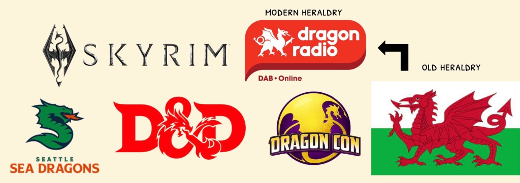 While it has moved on from distinguishing soldiers on a battlefield, Heraldry is still alive today. Modern symbol use of dragons is used largely to represent fantasy, but it can also be used in other contexts. For example, the Seattle Sea Dragons football team use a dragon to represent strength in their team, and Dragonhead Radio in Wales references the cultural symbol of the Welsh dragon on the country’s flag. And, of course, Dragons continue to represent far away lands in the fantasy genre.